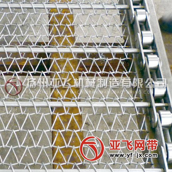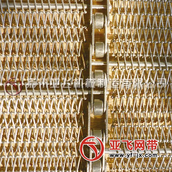 螺旋速冻机网带也称马蹄式网带,该金属网带用钩编形式而成;编织简洁、美观实用,网带也可采用标准链条传动。