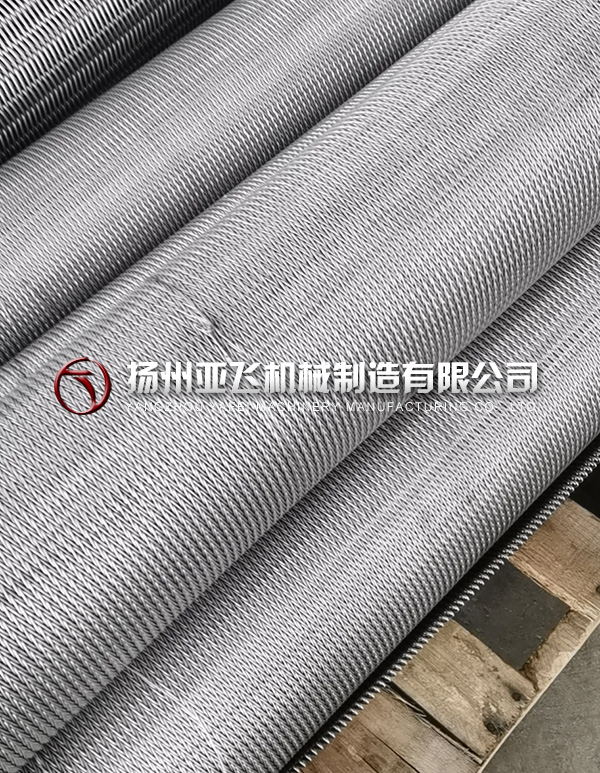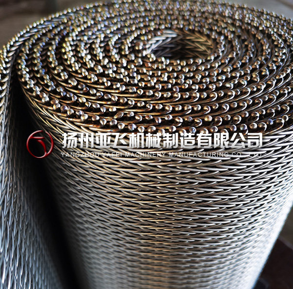 Welcome乐盈我公司专业研发制造化纤烘干炉网带,用于化纤物料烘干清洗输送,一般炉温100-300度,网带采用316lcu.或者304材质,网带耐酸耐碱,网带钢丝为圆丝或经过压扁处理,网带采用人字形编织方式,孔眼加密,要求表面水平,不刮丝,抗拉强度大,不跑偏,运行平稳。