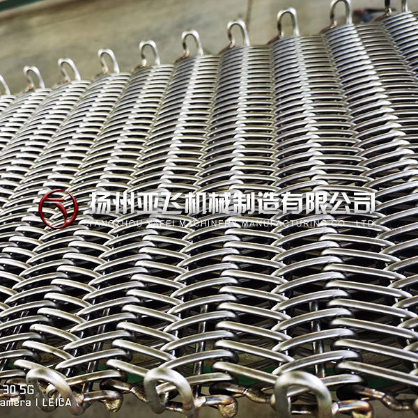 螺旋速冻机网带也称马蹄式网带,该金属网带用钩编形式而成;编织简洁、美观实用,网带也可采用标准链条传动。