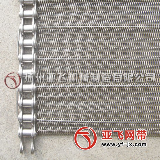 螺旋速冻机网带也称马蹄式网带,该金属网带用钩编形式而成;编织简洁、美观实用,网带也可采用标准链条传动。