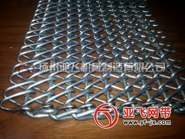 螺旋速冻机网带也称马蹄式网带,该金属网带用钩编形式而成;编织简洁、美观实用,网带也可采用标准链条传动。